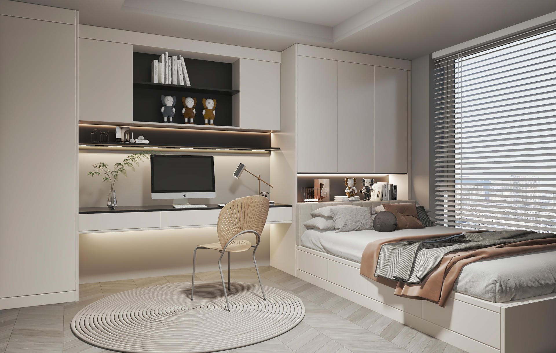 Fitted furniture can fulfil multiple purposes within your children's bedrooms. A walk-in wardrobe with shelving to store toys can create a dual playroom and dressing space, while a fitted dressing table can double as a homework desk.