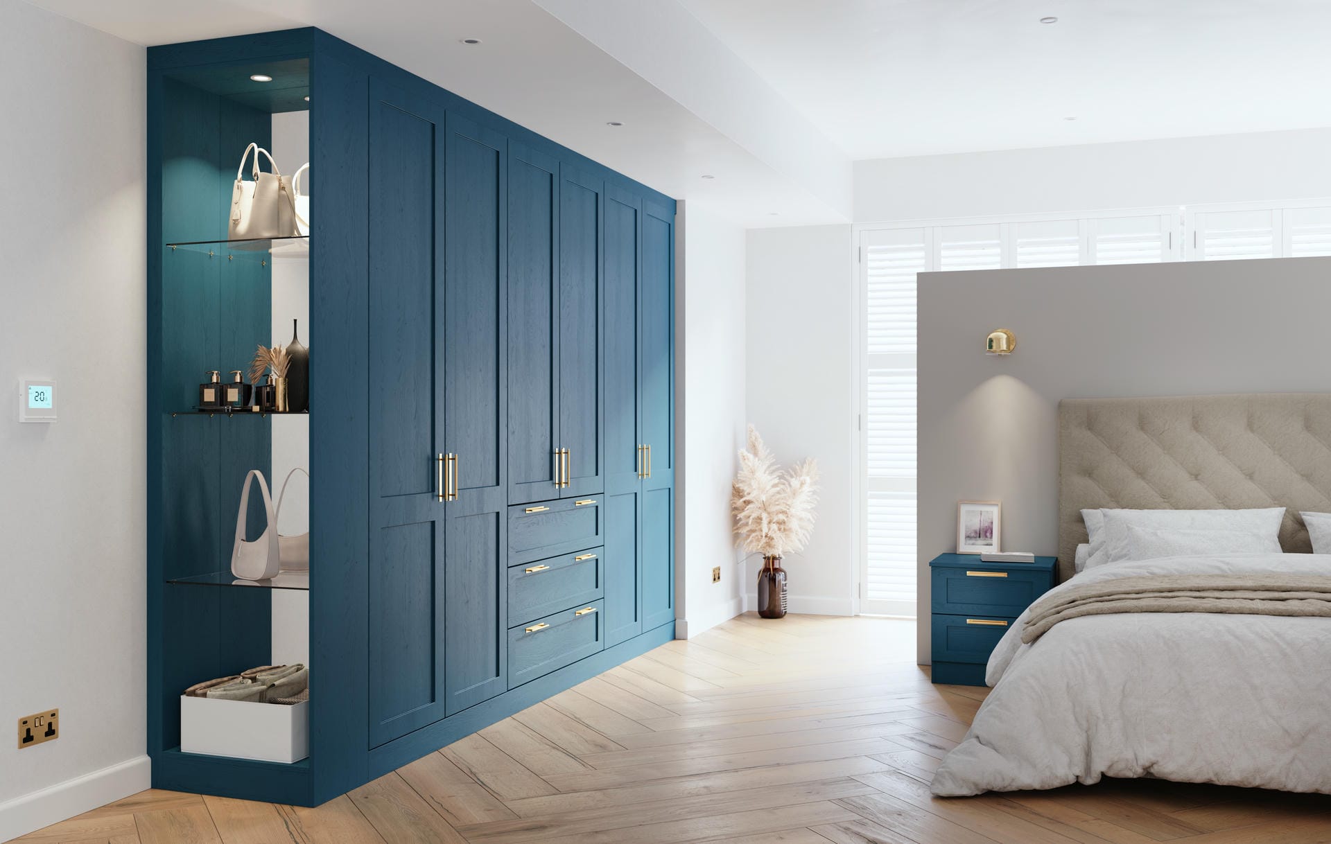 During your home survey visit, you will be introduced to our samples and materials as we plan your bespoke bedroom design together. Your designer will create a scaled drawing of your custom storage solution, illustrating how the space will be reimagined to maximise storage with a beautiful design.
