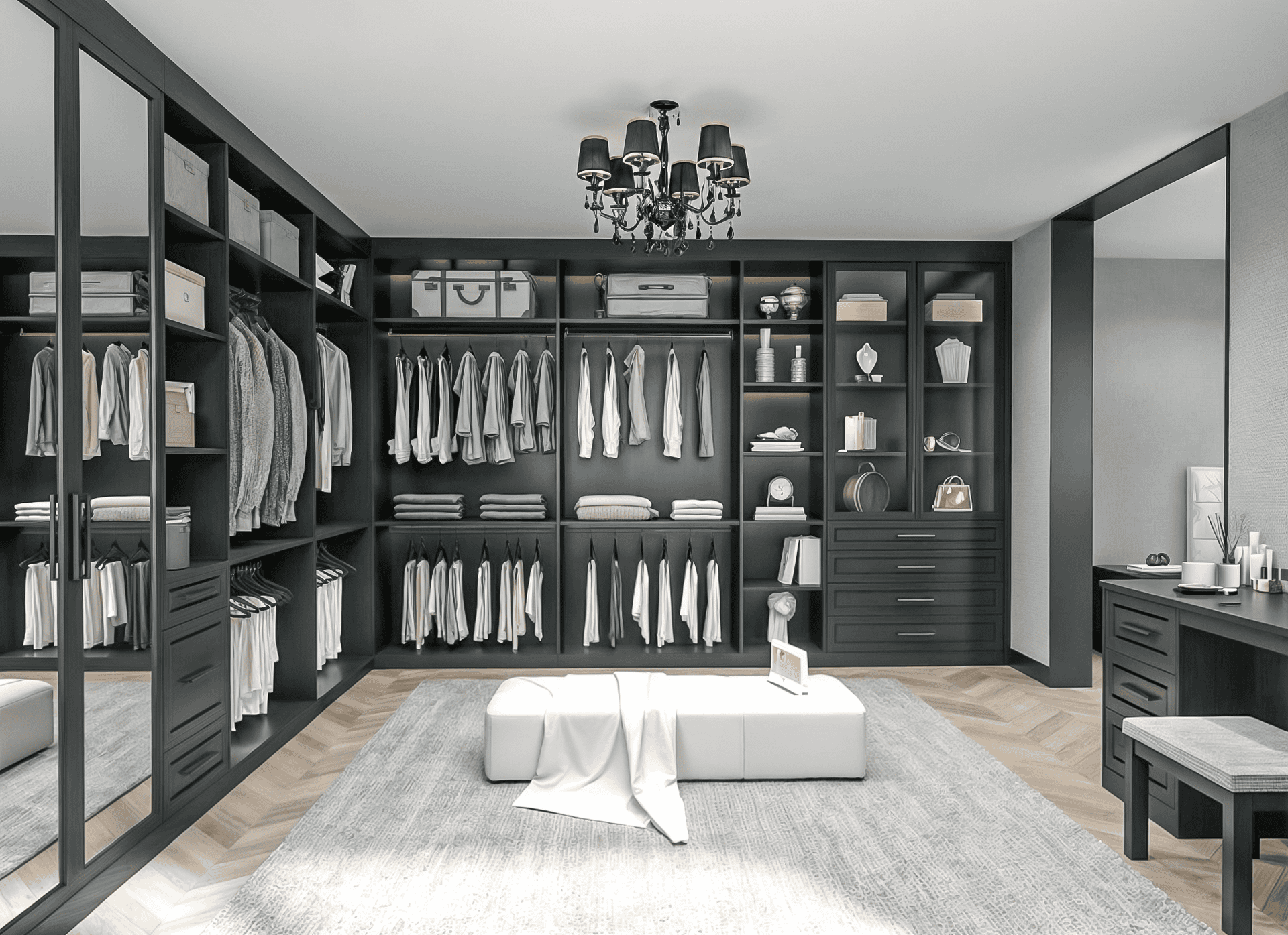 Of course, the main things we store in our wardrobes are our clothes. But a fitted bedroom or walk-in wardrobe offers some extra storage space within your home. You can store everything from kids’ toys to jewellery and even an entire home office behind closed doors.
