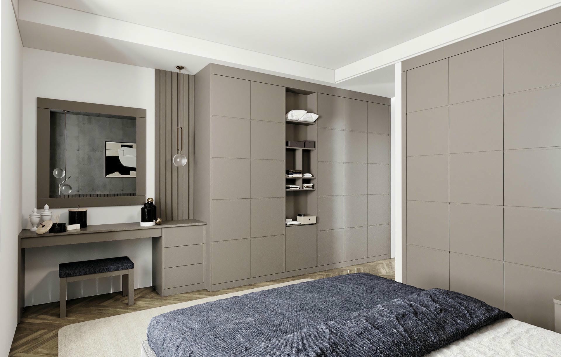 During your home survey visit, you will be introduced to our samples and materials as we plan your bespoke bedroom design together. Your designer will create a scaled drawing of your custom storage solution, illustrating how the space will be reimagined to maximise storage with a beautiful design.